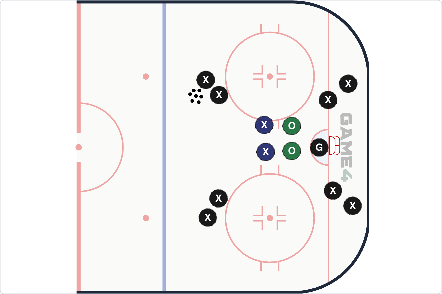 - The formation aims to generate one-timer opportunities for shooters on the flanks, open ice in the slot for the bumper, and low-zone outnumbered situations when the puck moves below the dots. Constant movement is the engine — the more the penalty kill has to hand off coverage, the more likely a lane opens.